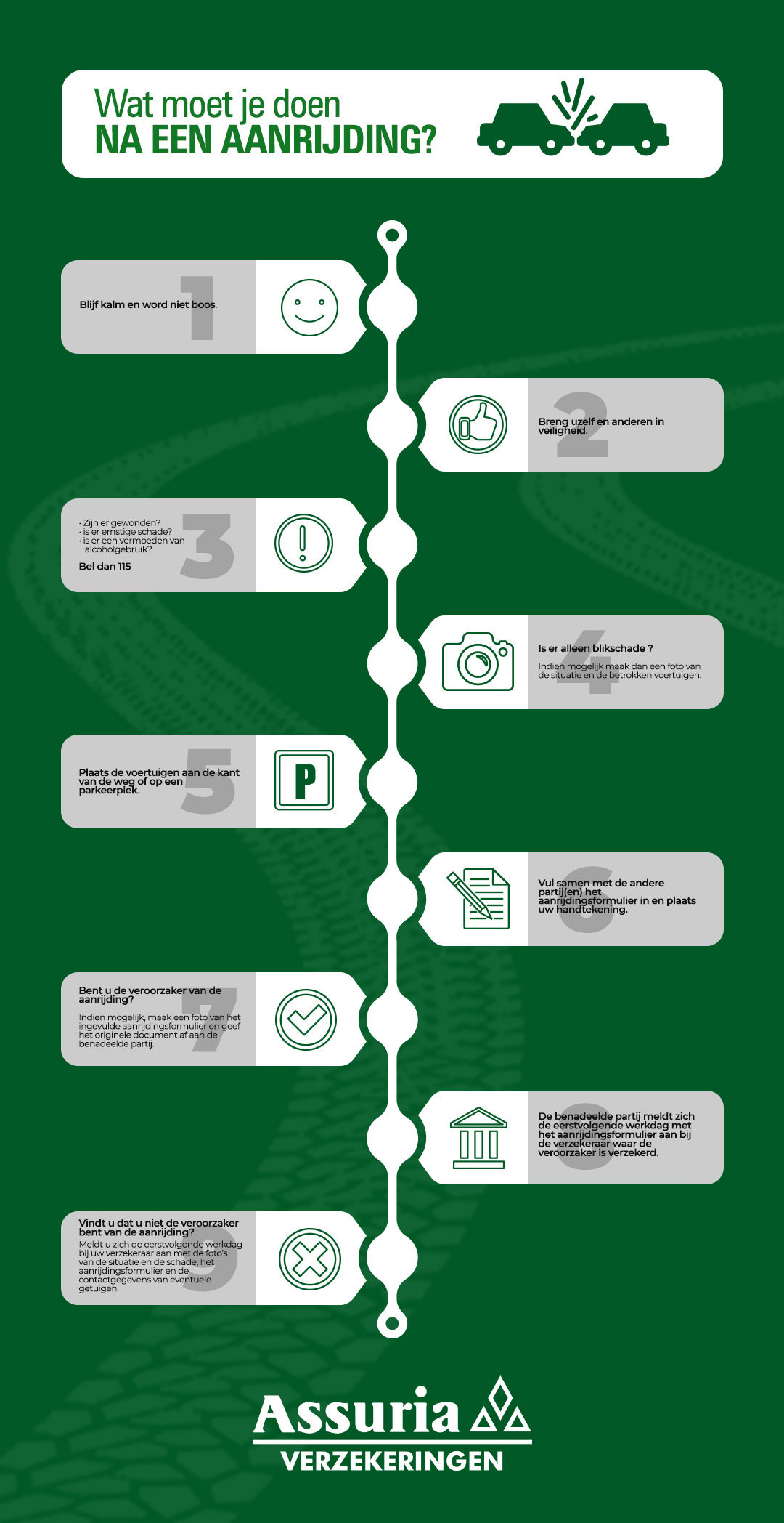 Voor noodhulp of aanrijdingen zijn wij 24 uur per dag beschikbaar en kunt u als verzekerde een beroep doen op Assuria Roadside Assistance. Bel op telefoonnummer 177.